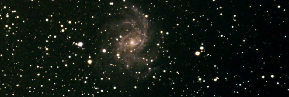 NGC 6946 im Sternbild Kepheus ist eine Galaxie schon fast in der Nachbarschaft unserer Milchstraße. Da das Licht dieser Galaxie durch sehr viel Staub in unserer Milchstraße durch muss, lässt sich die Entfernung schwer feststellen. Die Messungen schwanken von 18 Millionen Lichtjahren und gehen bis etwa 25 Millionen Lichtjahre. Aufgrund ihrer Form wird sie auch …