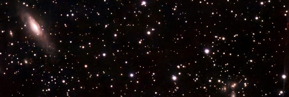 Pegasus, das geflügelte Pferd aus der griechischen Mythologie hat Erstaunliches parat. Hier geht es um NGC 7331 und Stephans Quintett. Die Galaxie NGC 7331 ist eine Spiralgalaxie wie unsere Milchstraße und etwa 46 Millionen Lichtjahre von uns entfernt. Unten rechts auf dem Bild sieht man eine Gruppe verwaschener Flecken. Es handelt sich um eine Galaxiengruppe, …