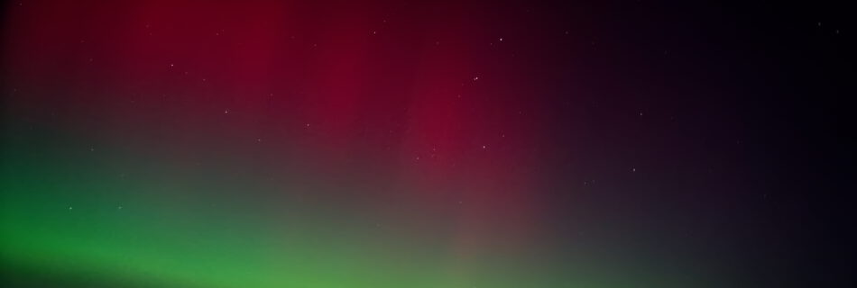 22.00 Uhr, ich saß auf dem Sofa und las, als plötzlich das Telefon ging. Philipp war dran, und fragte sinngemäß wo ich bliebe: Polarlichter! Sie wären schon alle draußen. Also schnell angezogen, Stativ mit Foto gepackt und raus. Der Beobachtungsort war ja nur 150 Meter entfernt hinter den Häusern. Und was da am Himmel geboten …