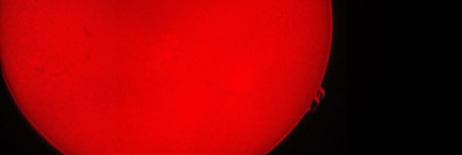 Eitel Sonnenschein, wieder einmal Gelegenheit in die Sonne zu schauen. Zwar ist die Sonne noch in ihrem Aktivitätsmaximum, aber die letzten male war da nicht viel zu sehen. Kleine Flecken und nur minimale Protuberanzen. Vielleicht war auf der Rückseite ja mehr los, aber das entzieht sich meiner Kenntnis. Aber heute doch ein paar Protuberanzen neben …