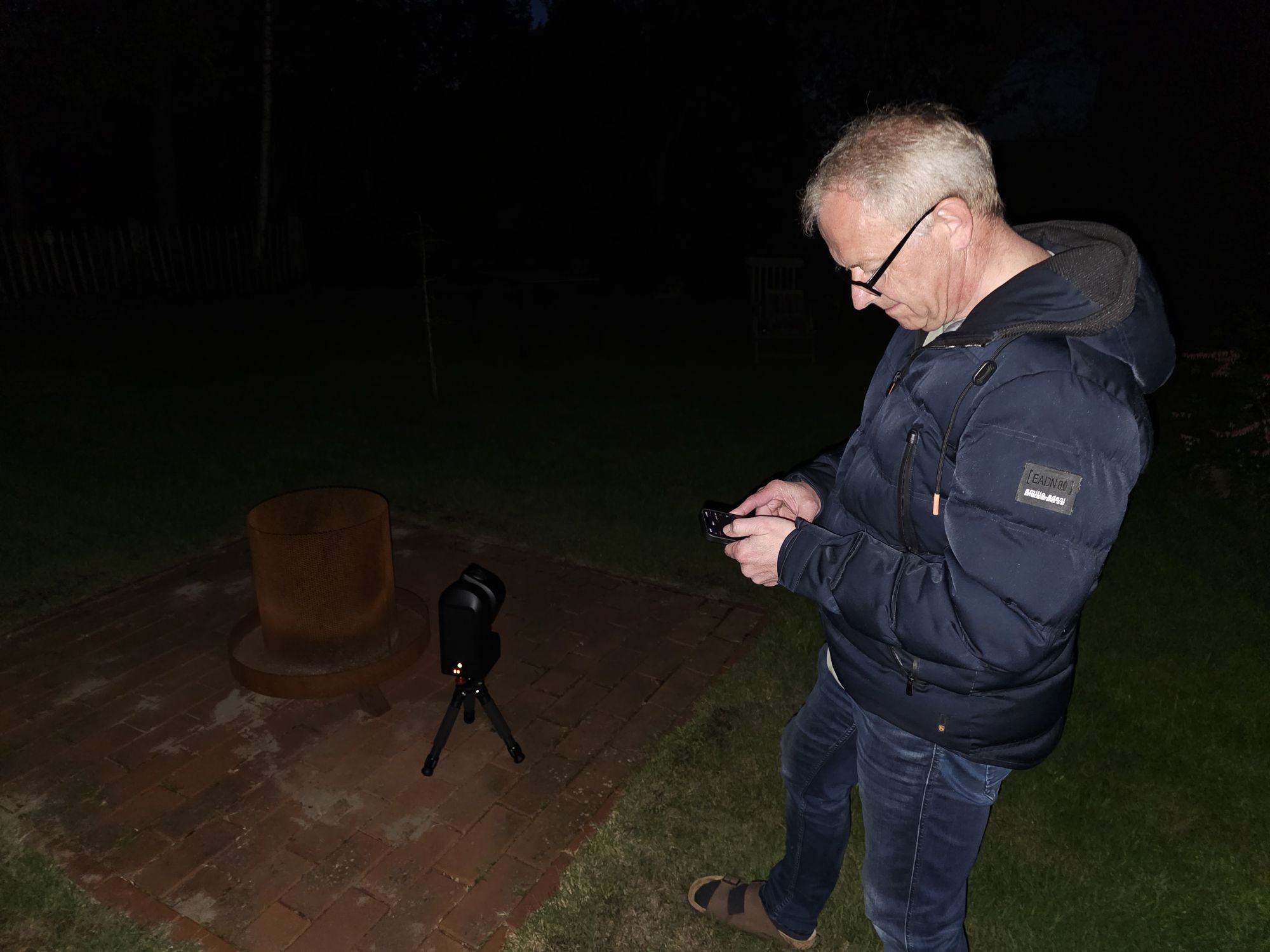 Am Abend des 29. April 2025 wagten wir uns trotz kühler Temperaturen in den Garten, um eine neue Beobachtung mit dem kompakten Smart-Teleskop Seestar S50 durchzuführen. Die Ausrüstung war schnell aufgebaut – auf einem soliden Untergrund neben der Feuerschale positioniert, dauerte die Vorbereitung keine fünf Minuten. Dank der intuitiven Steuerung per Smartphone war die Zielauswahl ebenso unkompliziert.