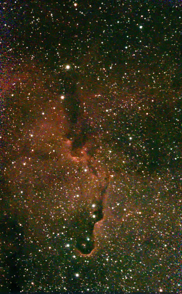 IC 1396A ist ein Sternentstehungsgebiet aus Gas und Staub in „nur“ 2400 Lichtjahren Entfernung. Dieser Nebel wird auch Elefantenrüsselnebel genannt. Man findet ihn im Sternbild Kepheus (Cepheus).
