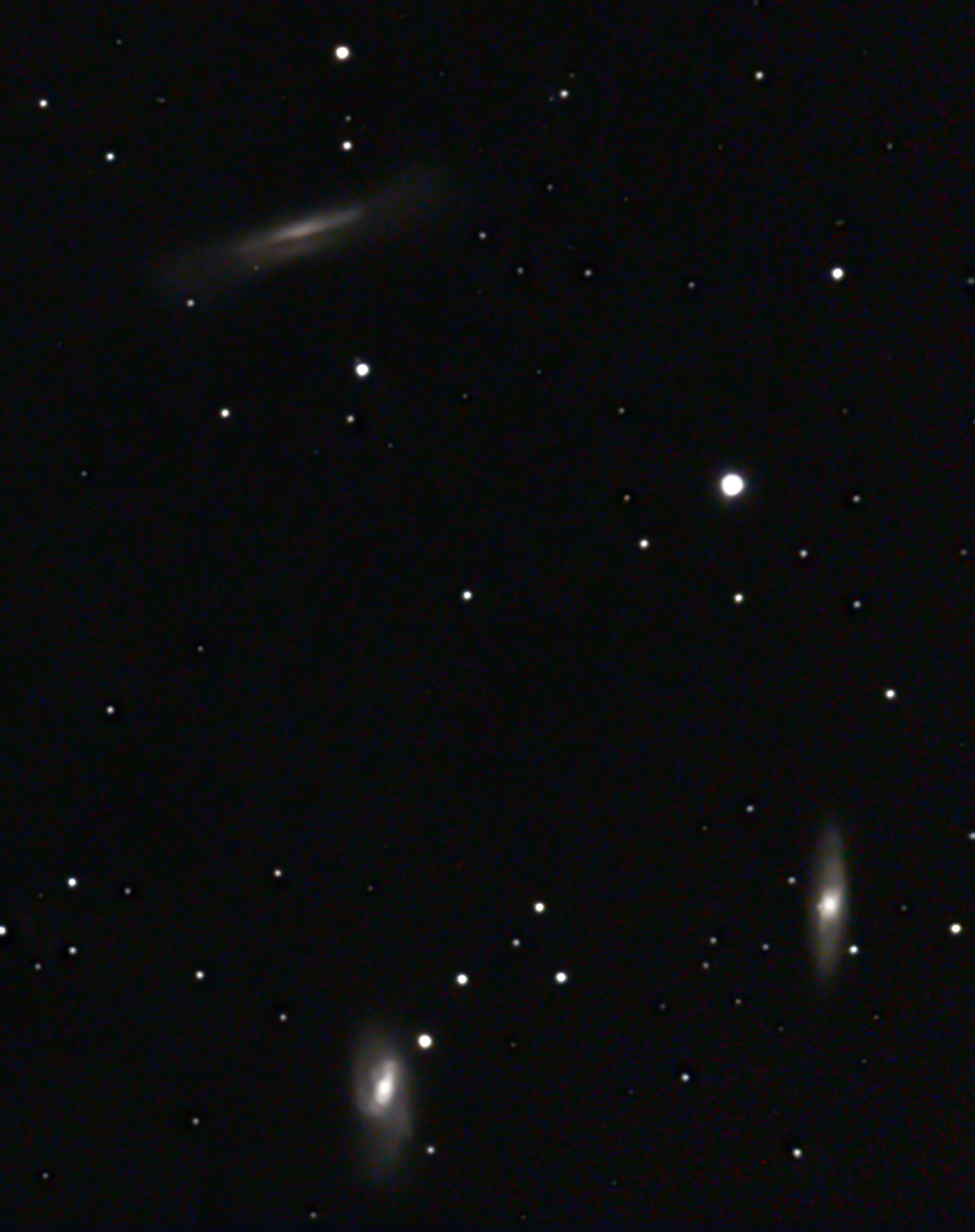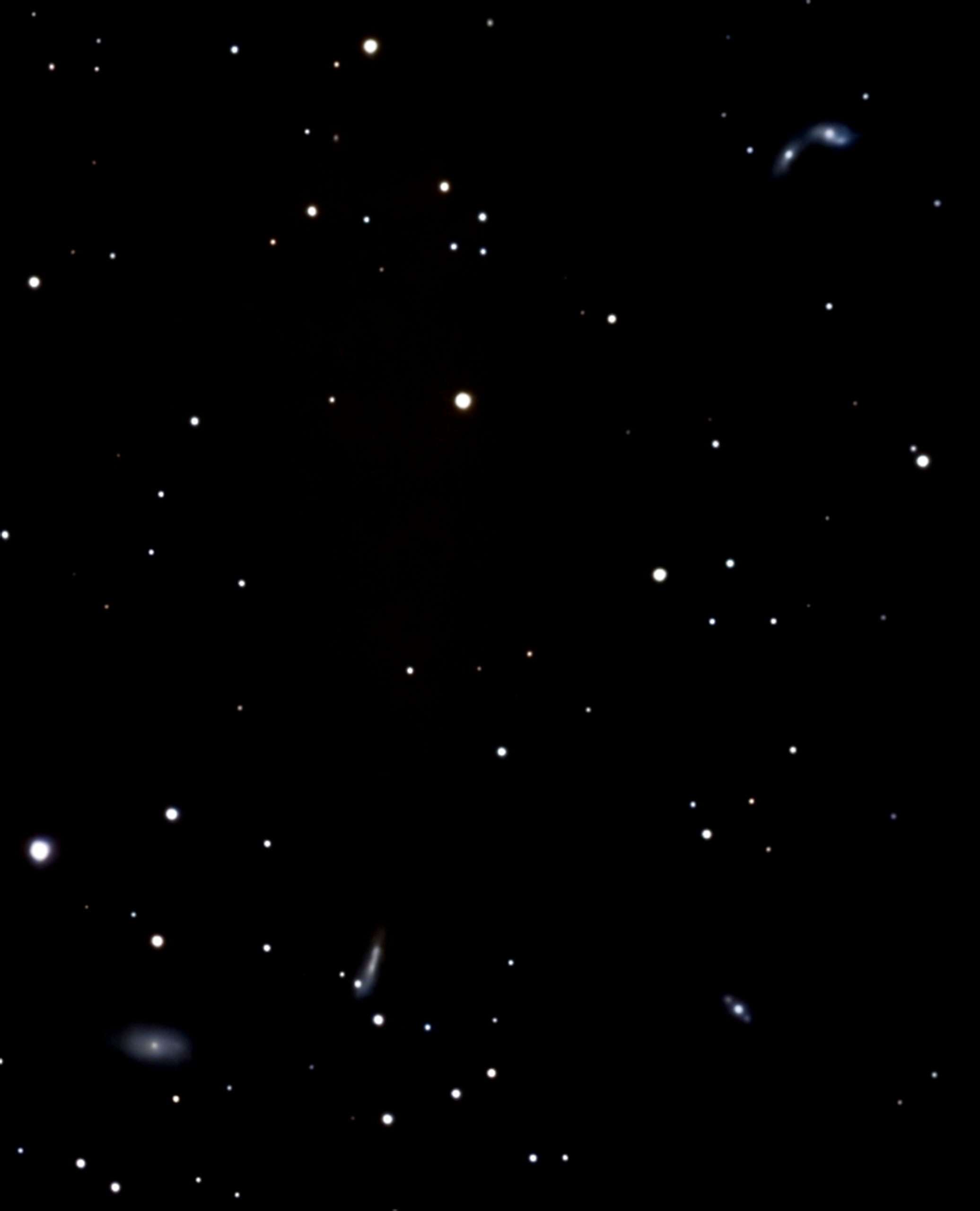 Im kleinen Löwen gibt es eine Gruppe von 5 Galaxien (NGC 3413, 3424, 3430, dazu NGC 3395 und 3396). Alle sind ca. 70 Mio LJ entfernt. Die beiden letzten stehen in Wechselwirkung zueinander, berühren sich fast. Sie werden in Zukunft verschmelzen.